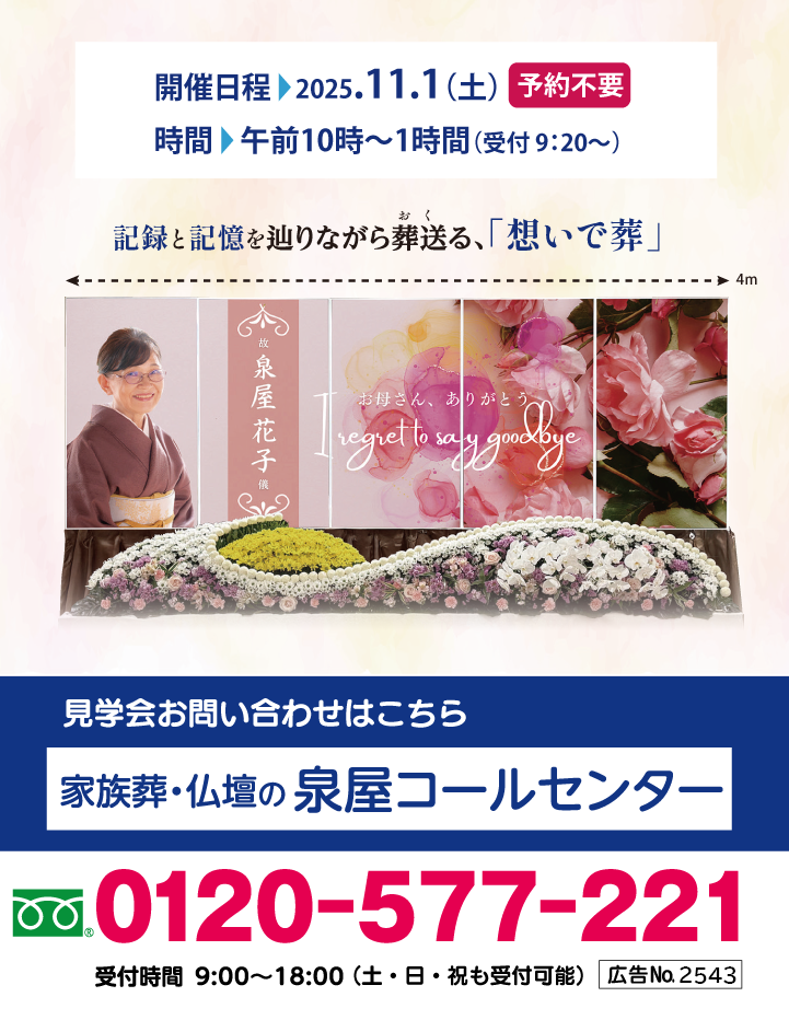 当日~一週間以内に泉屋「こころの会」にご加入の方に、一口につきもれなく『施行割引クーポン5000円』進呈!
