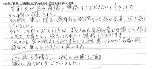 その時も、楽しく明るい雰囲気で納得のいく話が出来、父も安心していました。