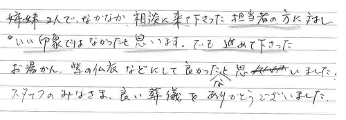 スタッフのみなさま良い葬儀をありがとうございました。