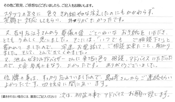 又、吉川さんから葬儀の後、ご丁寧なお手紙をいただきとてもうれしく思いました。